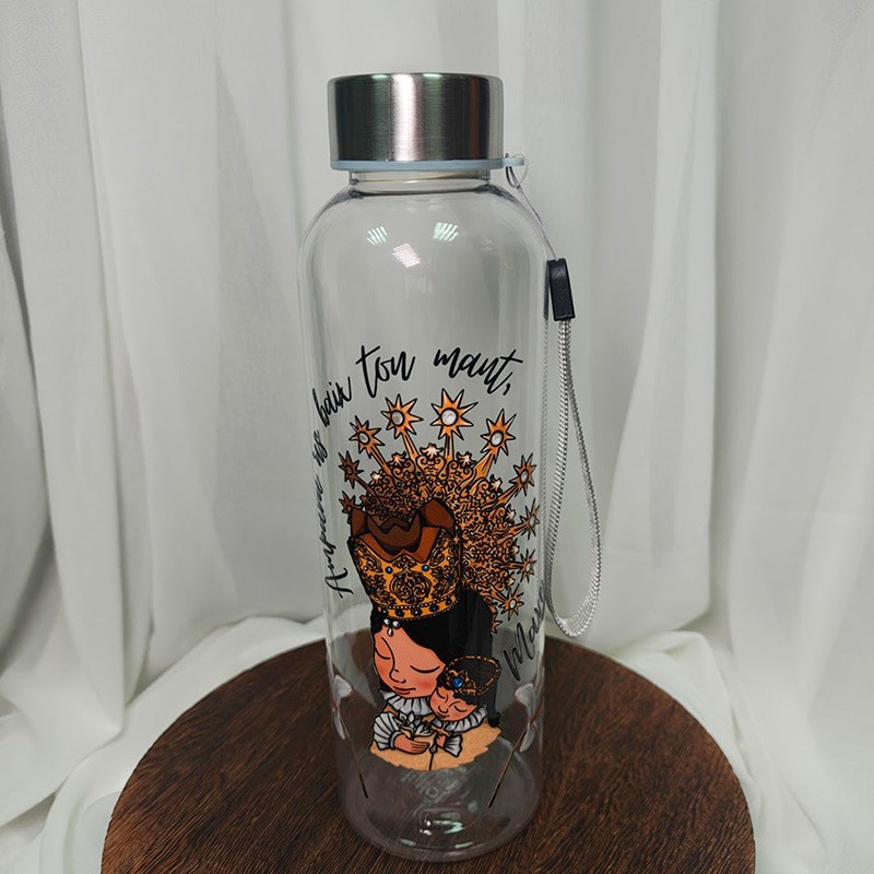Mantente hidratada con estilo y devoción con la Botella Mareta. Con un diseño exclusivo inspirado en la "Geperudeta" y el lema valenciano "Ampàra-mos baix ton mant", esta botella de cristal es el accesorio perfecto para llevar a la oficina, al gimnasio o a tus actos de comisión.