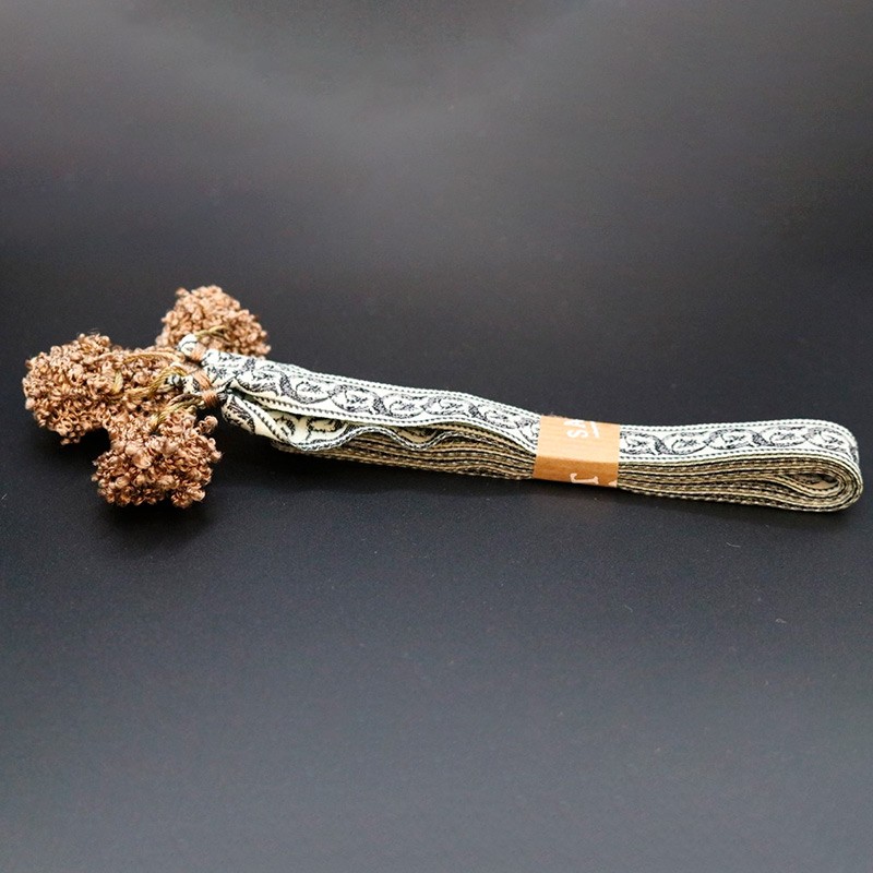 - Diseño tradicional: Confeccionados con una cinta de pasamanería resistente que presenta motivos clásicos entretejidos, aportando textura y un aire antiguo muy auténtico.